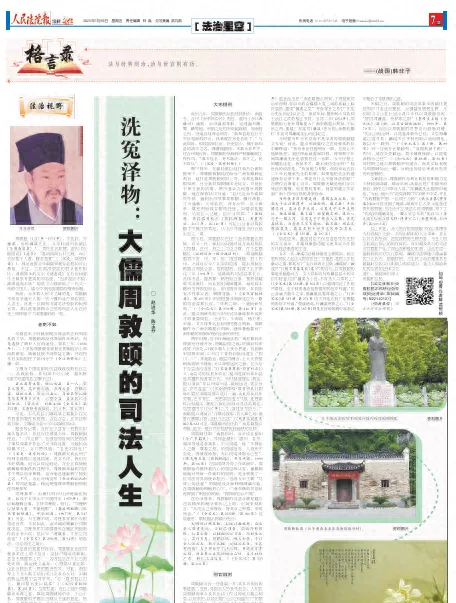 然而,為多數人所不了解的是,周敦頤不僅是學通天人的一代大儒和品行高潔的仁人誌士,還是一位擁有豐富司法經驗的優秀官員,其以洗冤澤物為己任的司法人生在歷史上同樣留下了濃墨重彩的一筆。