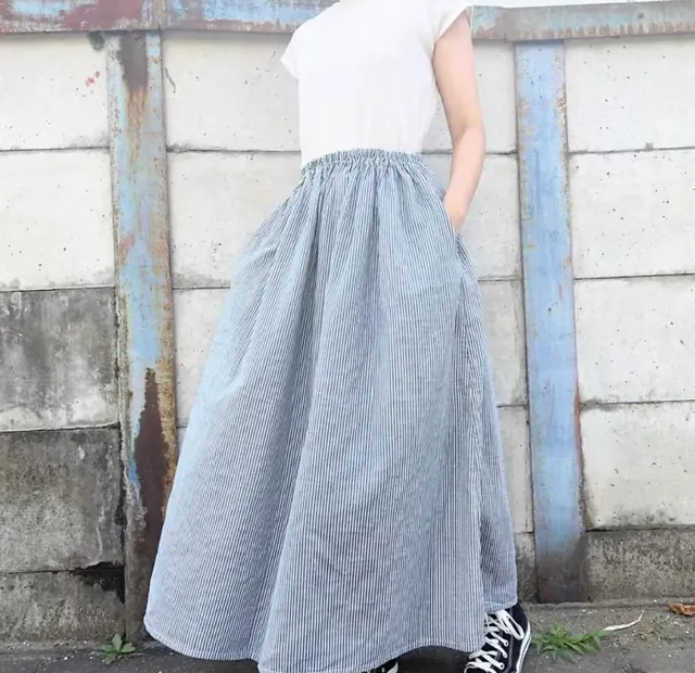 想到牛仔長裙,你是否只會想到常見的藍色牛仔窄裙呢?雖然它很百搭,但穿出去卻常常發生撞衫窘境,這款牛仔藍風格直條紋長裙,充滿了空氣感的直條紋鬆緊帶使用柔軟的日本雙層紗布,摸起來的觸感非常舒服。春夏吸汗秋冬保暖,一年四季都可以穿。雖然沒有內裡,但不太會透膚。 直條紋的圖樣,不論是休閒風或甜美風都可以搭配。 腰部鬆緊帶設計舒適不緊繃,兩側有口袋,使用時十分方便。