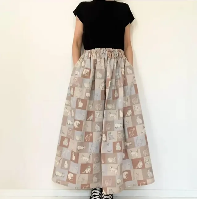 格紋可說是萬年不敗的款式,貓格紋長裙,絕對是貓咪愛好者必須擁有的單品!此款布料材質較硬挺,無內裡但不會透光,並且速乾,一年四季都可以搭配。