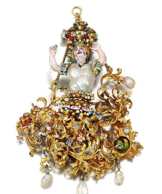 這種以巴洛克珍珠為作品中大塊主體,然後隨珍珠天然的形狀設計,用大量的黃金、琺瑯以及鑲嵌寶石疊加修飾,以保持整件作品平衡、表現作品主題的手法,被廣泛套用在同一時期的首飾制作上。