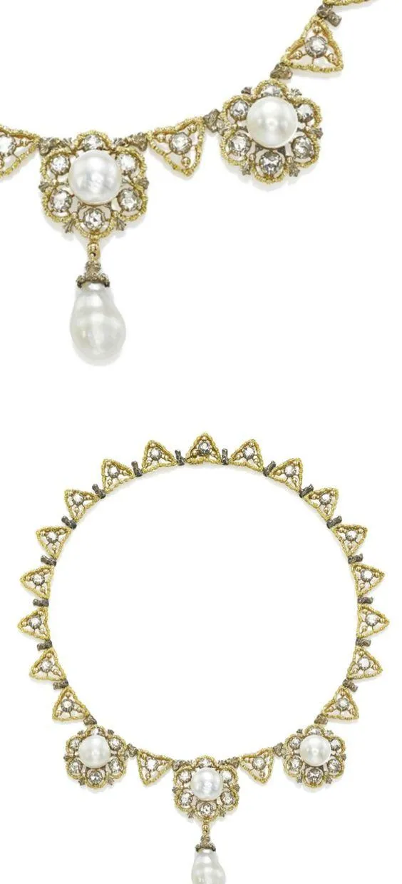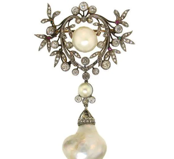 有趣的是,起源於歐洲1600年至1750年,在藝術層面被廣為盛行的「巴洛克」一詞,本身就是葡萄牙語裏面「不規則珍珠」的意思。19世紀中葉以後,藝術史家逐漸將「巴洛克」視為在文藝復興和古典主義之間的藝術時期名稱,其帶有「顛覆傳統」意味的藝術形式,也反過來對珍珠首飾產生了深遠的影響,在當時歐洲宮廷皇室及貴族中倍受青睞,多被用以鑲飾在皇家冠冕或胸針飾品。