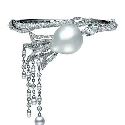 到了20世紀,隨著工業時代的來臨,首飾風格開始轉向裝飾藝術風格,設計更加簡潔,傾向於使用幾何圖案和建築風格,偏愛用銀白色的貴金屬材質來進行鑲嵌。於此同時,Tiffany、Cartier等西方著名珠寶品牌在此時期不遺余力地革新設計推廣品牌,其中不乏一些取材巴洛克珍珠的傑出作品。