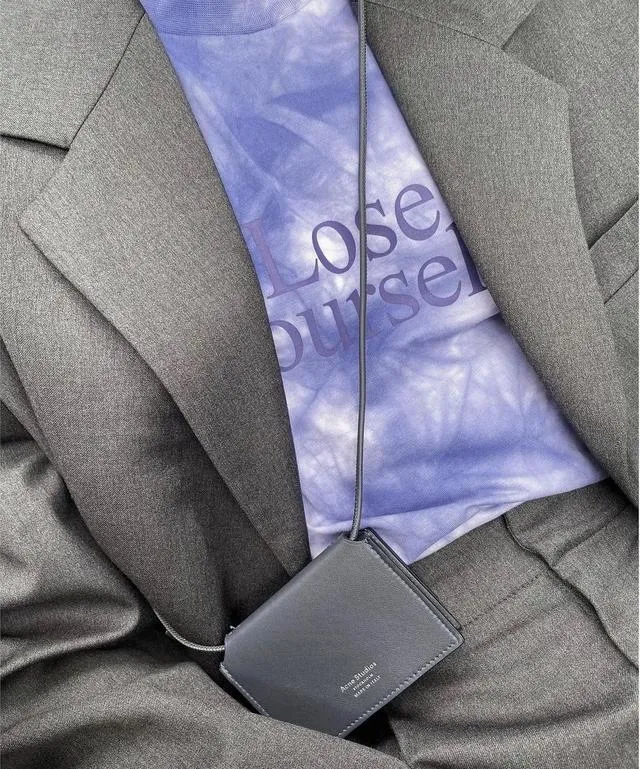 也可在灰色西裝套裝裏面搭件紫色內搭。