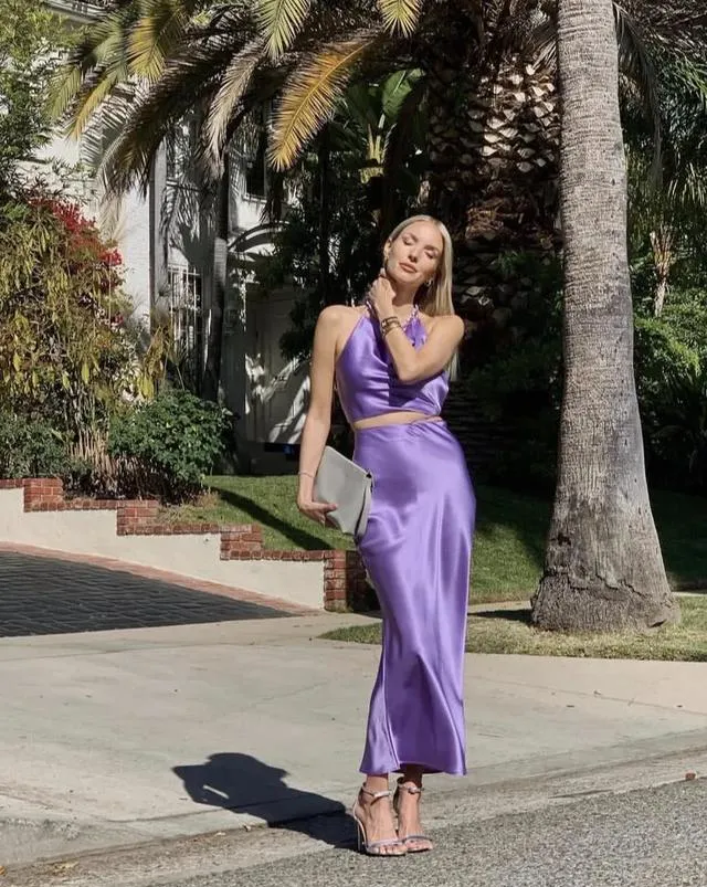 在單品的選擇上,色彩性格的巧妙搭配是藝術的體現。Juny Breeze便是此中高手,灰色格紋西裝與紫色吊帶長裙的組合,既展現了堅強的氣質,又不失女性的性感魅力。