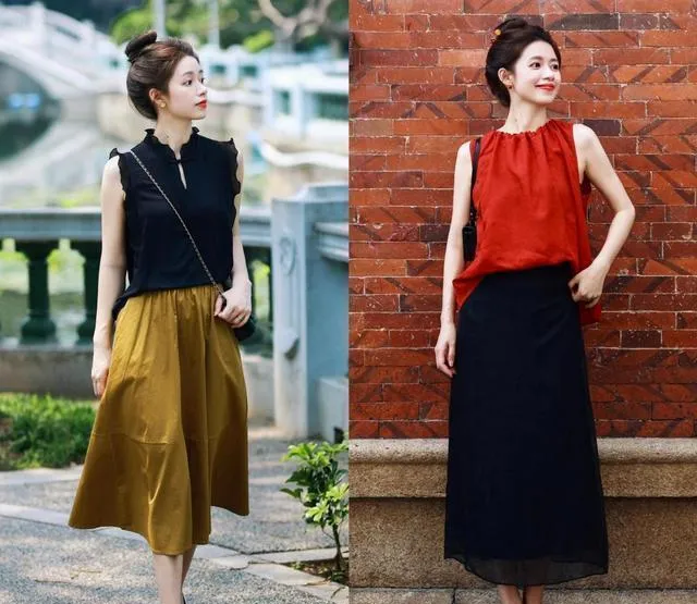 無論是單色的裙子還是五顏六色的裙子,統統都能悄悄顯示出四十多歲女人的高雅和灑脫。
