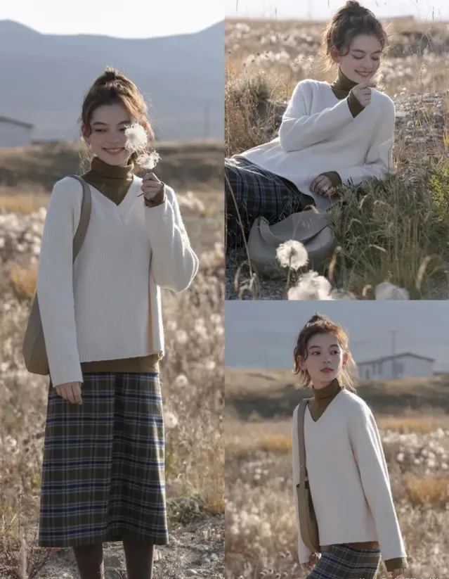 版型也是決定毛衣慵懶感的重要條件, 版型選擇應當首選寬松,舒適的毛衣,但不可以太過於寬松,若太過於寬松,則會看起來邋遢,若太過於緊身,則會看起來太別扭,適度的寬松能營造完美的秋日慵懶感。 ▼