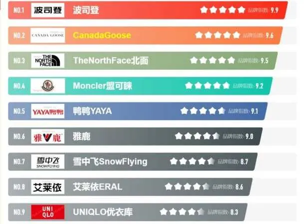 鴨鴨羽絨服 : 是江西共青鴨鴨(集團)有限公司,十大羽絨服品牌,中國馳名商標,中國名牌,中國綠色環境標誌產品認證,中國最大的現代化羽絨制品專業生產企業。