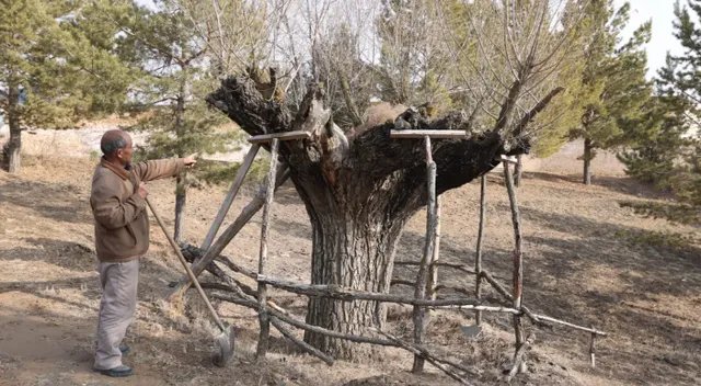 齊軍祥正在進行樹木養護工作(央廣網發 高加飛 攝)