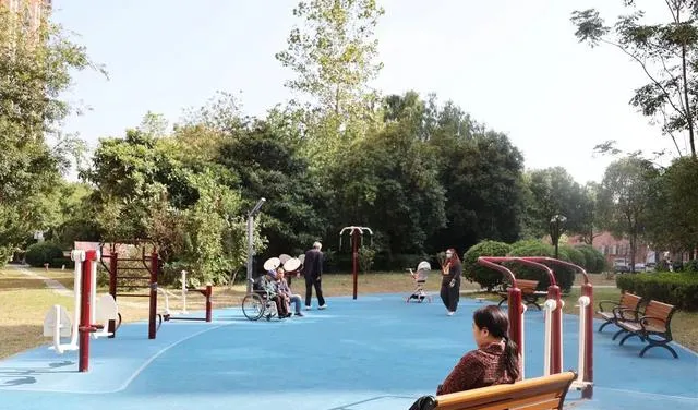 平整的地面、寬敞的空間布局、嶄新的健身器材,還有幾把休閑座椅……健身苑點內,各式各樣的健身器材高低錯落地擺放著,從老年人適宜的拉升器、西洋棋桌,到年輕人喜歡的力量訓練器材,應有盡有,每位居民都能在這裏找到適合自己的健身方式,在「家門口」享受健身鍛煉的樂趣。