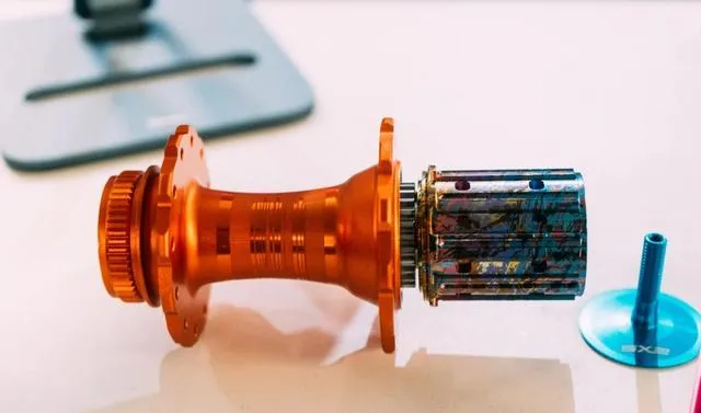 除了這個有趣的碳纖維全內走前叉系統外,該品牌還展示了大量優質的超輕件。包括一個相當花哨的後花鼓塔基 – 這是個通常裝好車根本看不到的地方 - 以及一個超輕12速飛輪、碳纖維坐管、3D打印鈦合金水壺架,以及一個輕到離譜的一體把立上蓋+螺絲組合。