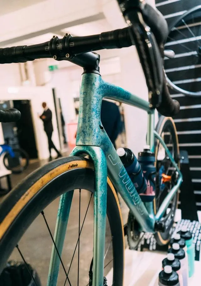 該品牌在展台上的工作人員時刻強調的一點就是,這款車架可能會讓像SL6或Aethos這樣的公路車更具空氣動力學優勢,或者至少看起來更現代,但同樣的,也有相當多的現代性復古車,比如Cannondale SuperSix Evo HiMod(後上叉沒有下沈的那款)可以透過這款前叉進行現代化改造。