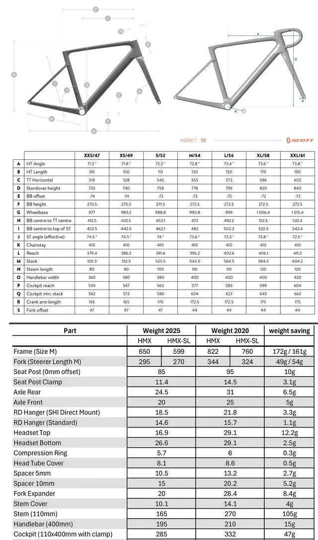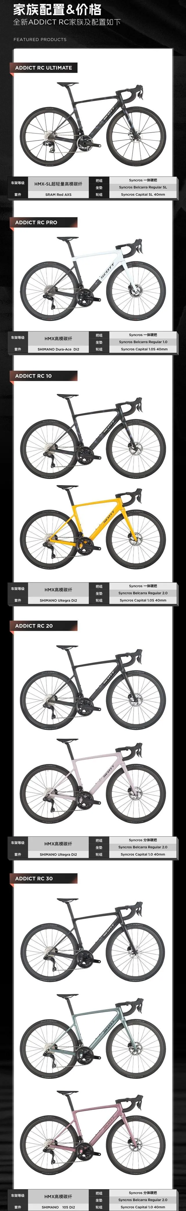 2024年11月26日,SCOTT正式釋出旗下新一代輕量化競技公路車—第四代Addict RC。車架和前叉最低重量分別來到了599g與270g,整車重量更是最低僅有5.9kg。SCOTT表示,這是其有史以來制造的最輕的自由車。同時相比上代,節省了12w功率,提升了36%的舒適性,胎寬支持提升到34mm。