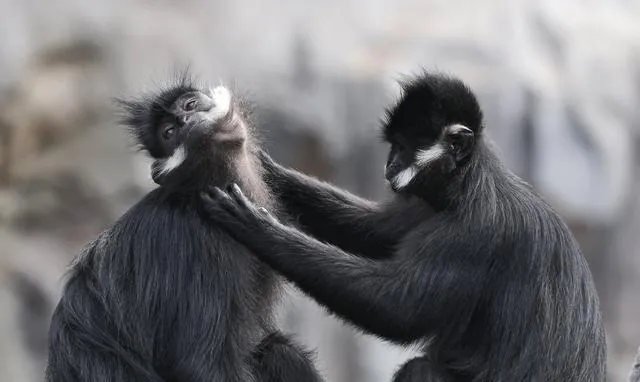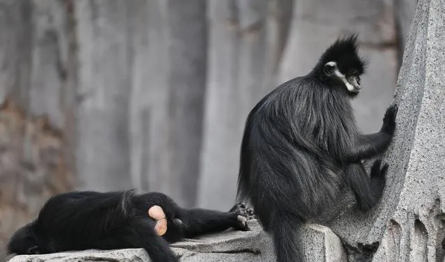 這是3月12日在新加坡亞洲雨林探險園拍攝的黑葉猴。新華社/歐新