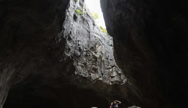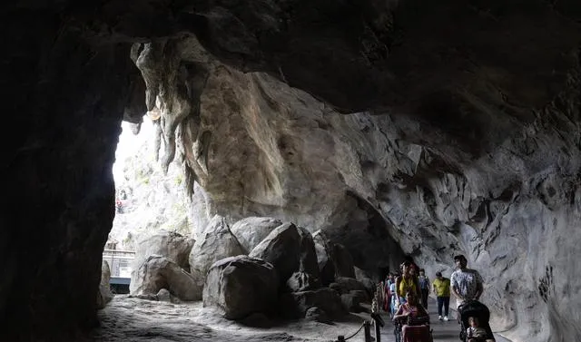 3月12日,在新加坡亞洲雨林探險園,遊客在「洞穴」景點遊覽。新華社/歐新