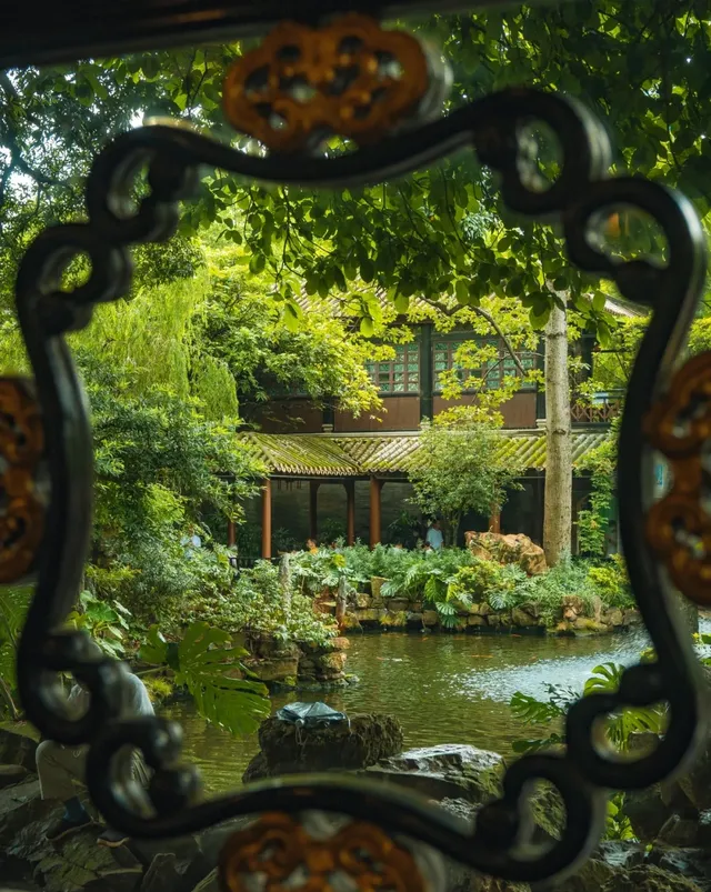 在園裏隨處逛逛,就像是闖入了一場遊園驚夢。 轉角就能遇見亭台樓閣,沒幾步就會邂逅小橋流水,哪怕是走在回廊,透過雕花的窗柩,也能獨占一方清雅景色……