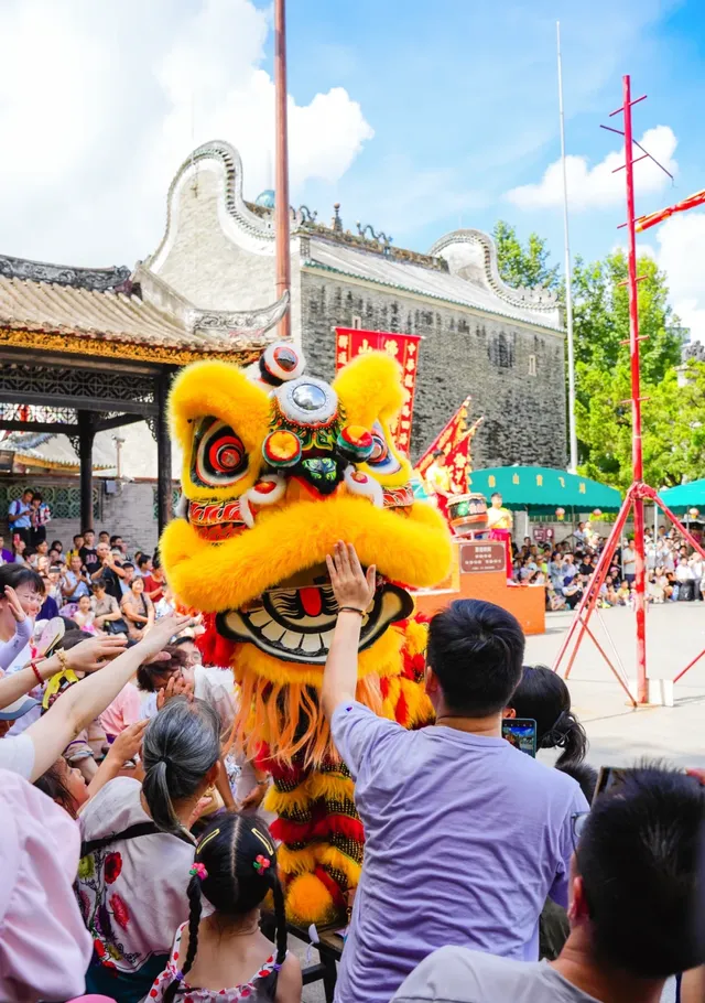 閑時也能去祖廟看醒獅表演,還是電影【黃飛鴻】同款。 每天上午10點,下午14點15分,15點30分,都會在祖廟如期舉行,看舞獅在梅花樁上搖頭擺尾,活靈活現,贏得大家一陣陣叫好!