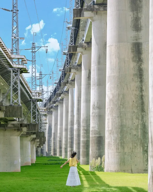 重點還是免費的,簡直有被驚艷到了。 映入眼簾的是巨型牌坊,以及恢弘大氣的五行橋,沿著湖邊漫步,微風拂面,整個人都輕盈了起來。