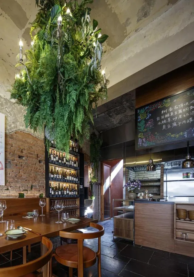 走進店裏就能找到這只瓦貓低調隱藏在角落,最多被關註的一只則在通往二層樓梯外,龜背竹掩映著寫著店名的樣版前,一只大號瓦貓和隨意傾倒的幾支瓦罐坐在一起,一派野趣。