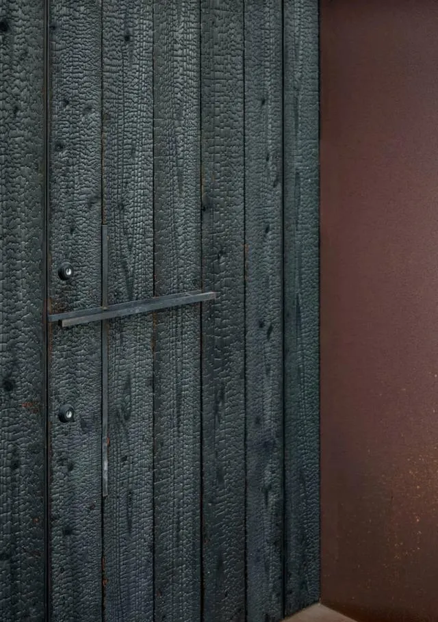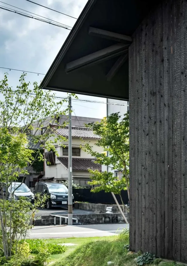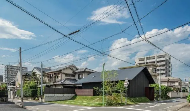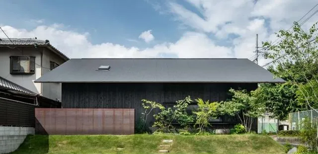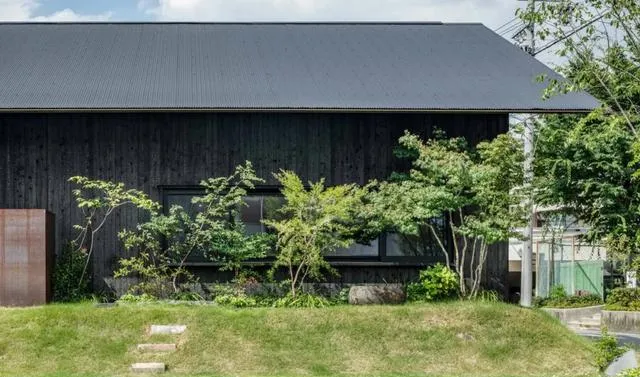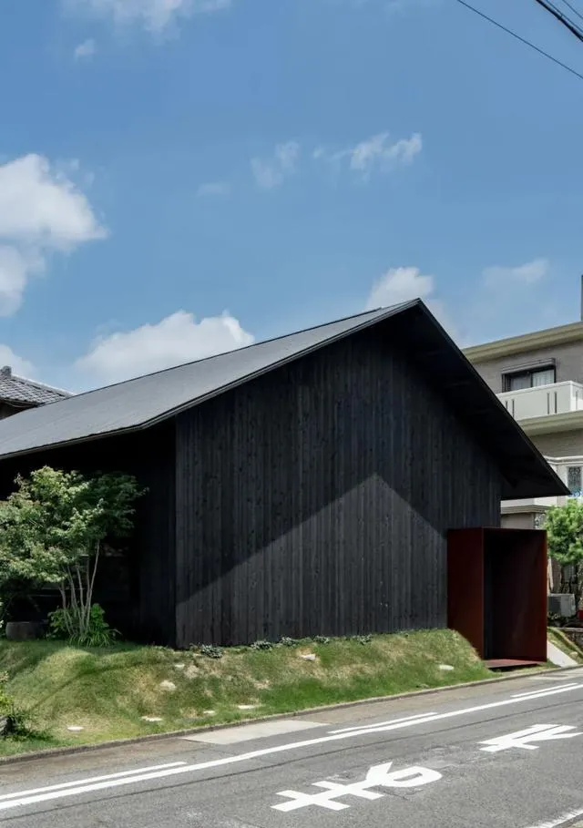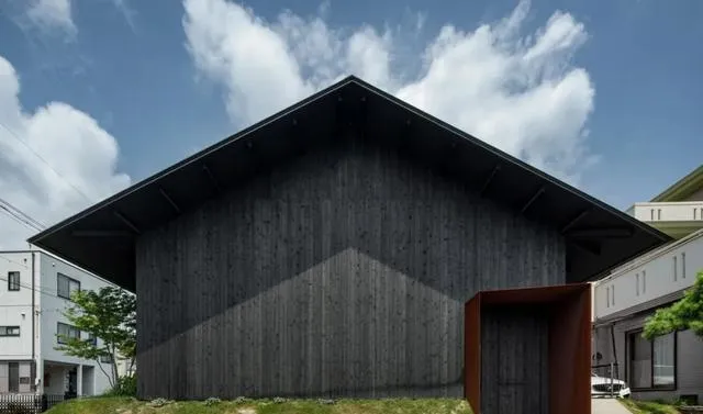 坐落於日本愛知縣名古屋市的山口町住宅,由 Slow 工作室匠心設計,是一座專為一家三口打造的現代居所。其外墻采用燒制雪松木材構建,環繞著建築立面。設計師的這一精心考量,使得房屋能夠巧妙地與周邊住宅環境融為一體,宛如身著一件 「黑色長袍」,憑借其材質與配色方案,在鄰居眼中顯得極為低調,近乎隱形。