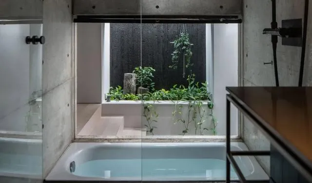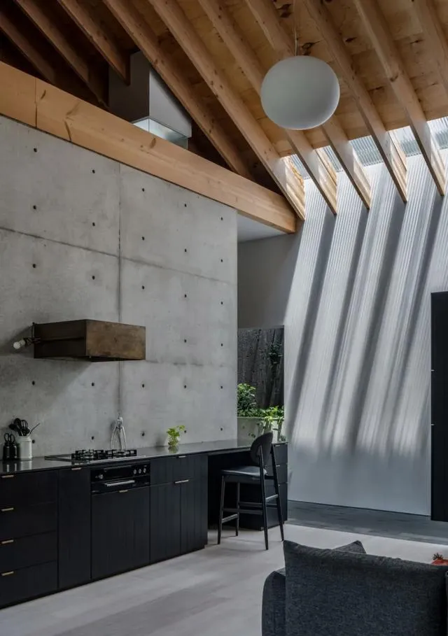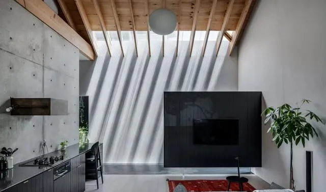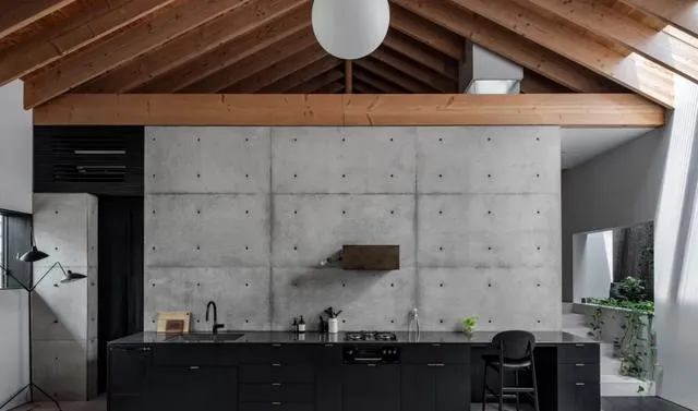 住宅內部巧妙融合了混凝土與木材兩種材質。空間布局劃分為公共空間、功能空間以及私人空間三個層次。透過挑高且無遮擋的天花板與玻璃表面,房屋巧妙地將這些區域相連,確保各個區域在視覺上始終保持通透連貫。對於山口町住宅,Slow 工作室的設計團隊成功呈現出一種既具優雅格調,又能與周邊環境完美融合的現代極簡主義設計風格。