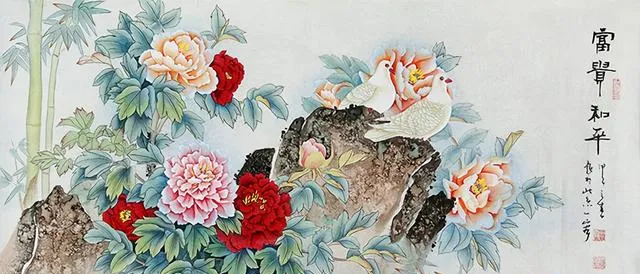 牡丹+竹子+鴿子:掛在臥室輕快典雅、和平富貴