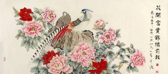 牡丹+錦雞:掛在客廳大氣高檔、富貴呈祥