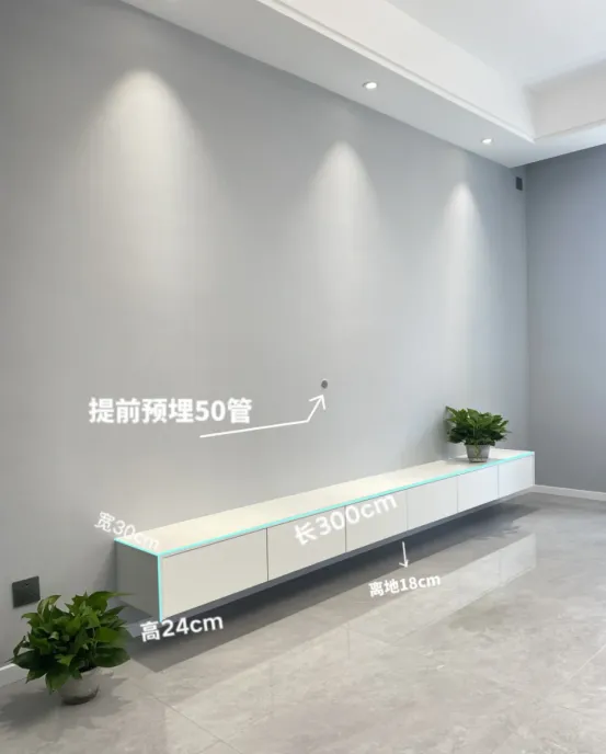 把電視櫃懸空,下面就有足夠的空間,方便機器進進出出,打掃衛生,保持家裏一塵不染。