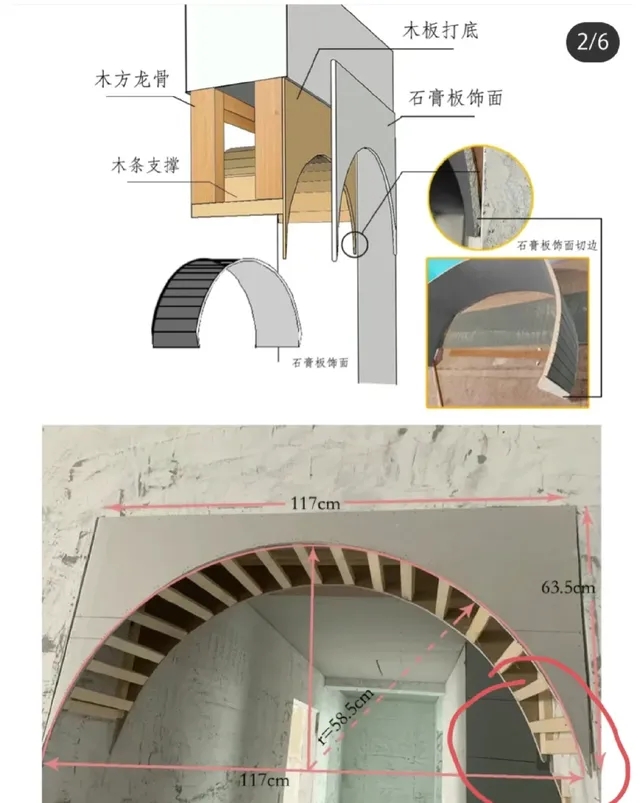 但也存在著致命的缺點, 那就是「開裂」, 這是因為拱門門洞是由「木工板+石膏板+膩子」組合而成。
