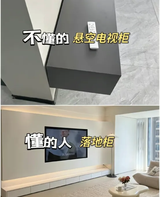 「懸空電視櫃非常考驗墻的承重力和五金配件的品質,時間一長或遭遇重力就會出現裂縫,連維修都沒法維修。」
