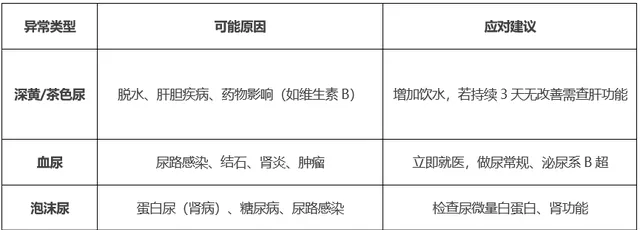 持續深黃色尿+口渴乏力:提示脫水或糖尿病、肝功能異常。