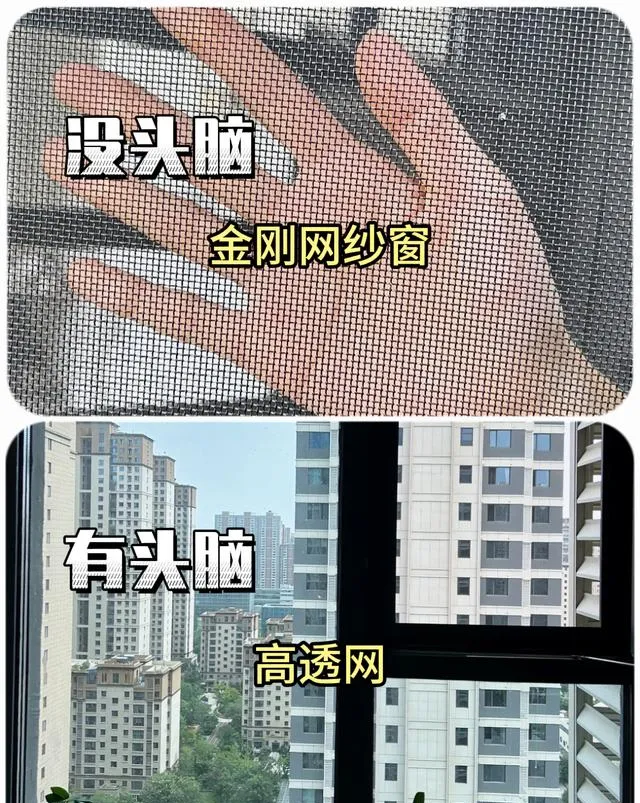 11、不選金剛紗網,材質粗糙和突兀,風阻較大透風性差,金剛紗網由於顏色較深、網孔較小