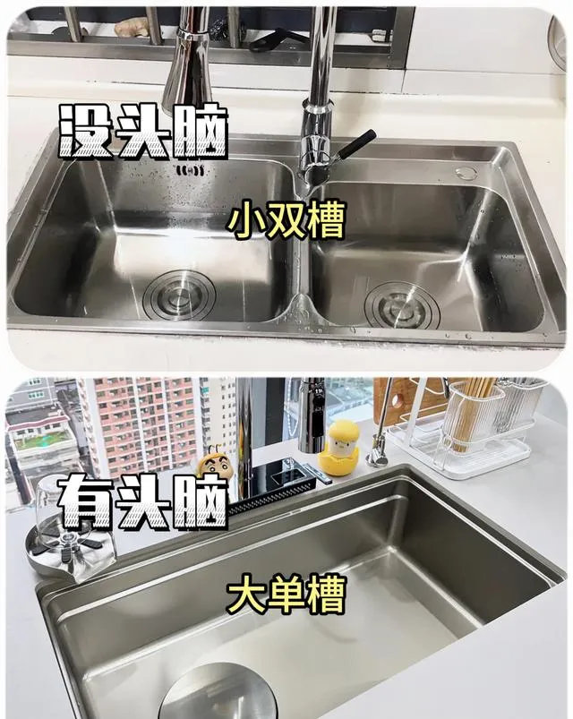 8、水槽裝大單槽,不裝小雙槽,大單槽空間寬敞,可以容納較大的鍋具等廚房用具
