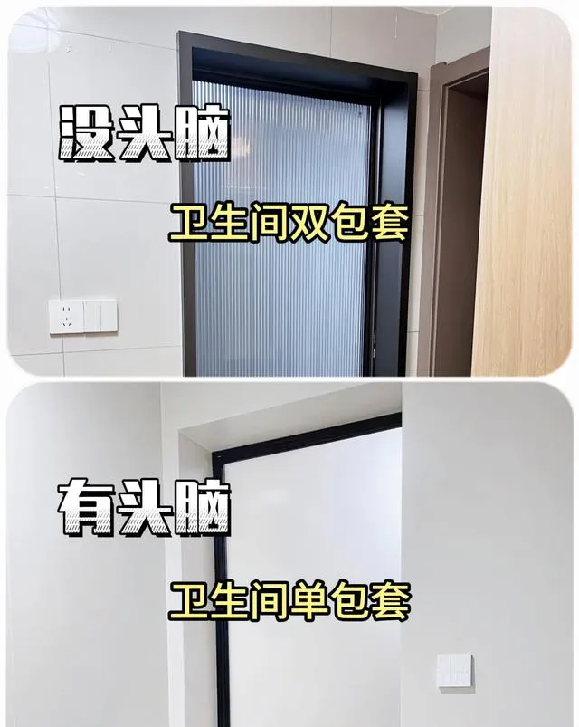 13、衛生間門做單包套,不做雙包套。單包套價格便宜,看起來更簡約占用的空間較小,提升衛生間的美觀度。
