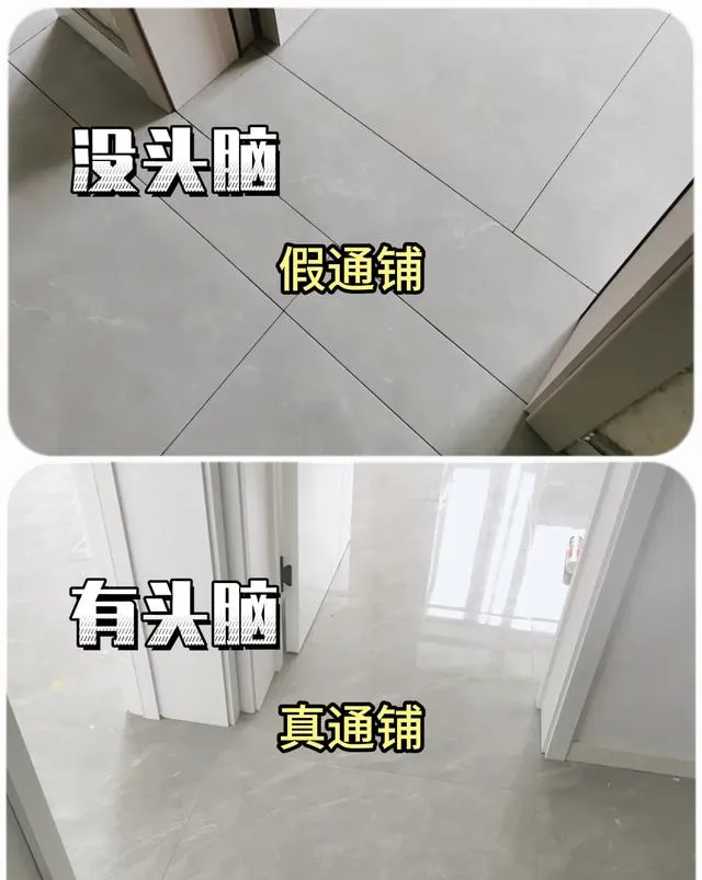 2、地磚通縫鋪設可以使整個空間在視覺上更加連貫統一,沒有過門石的分割,地面看起來更加流暢自然