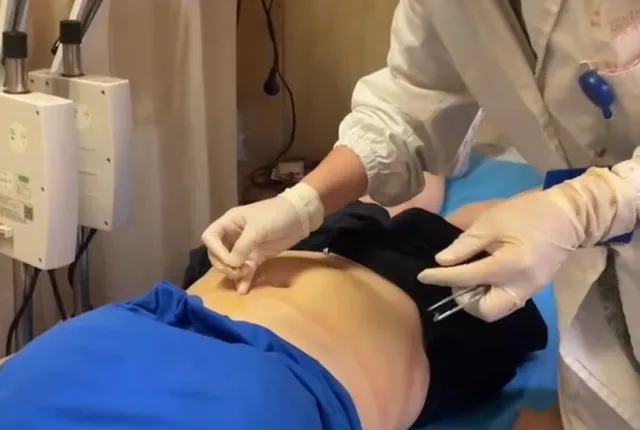杭州市東新街道社群衛生服務中心體重管理門診,中醫師在為就診者進行中醫埋線理療。(受訪者供圖)