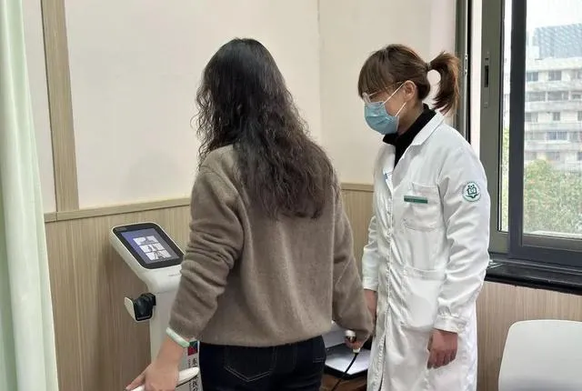 杭州市拱墅區文暉街道社群衛生服務中心的體重管理門診,醫生為有體重管理需求的就診者做身體檢測。(受訪者供圖)