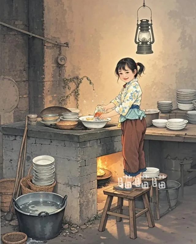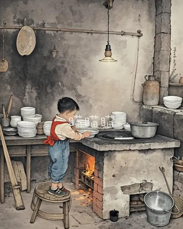 記得小時候洗碗刷鍋是用高粱做的刷子,沒有洗潔精,如果洗不幹凈就用熱水,或者用使用堿粉。