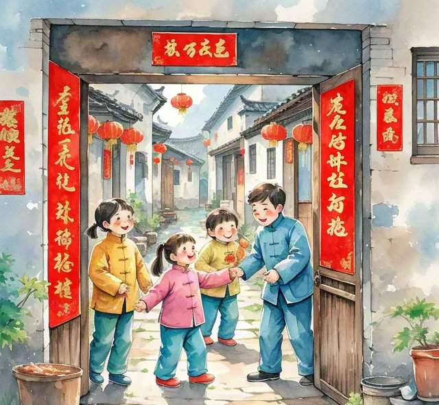 從臘月開始,年味就悄悄彌漫在村莊的每一個角落。家家戶戶忙著打掃除塵,貼春聯、掛燈籠,將房子裝扮得喜氣洋洋。我和小夥伴們也會參與其中,雖然時常幫倒忙,比如把漿糊抹得到處都是,或是把春聯 貼得歪歪扭扭,但那份參與的喜悅卻是無法言喻的。每當看到自家的大門被紅彤彤的春聯裝點得煥然一新,心中便湧起一股莫名的成就感。
