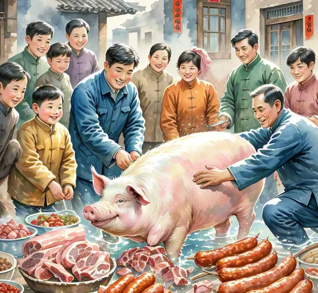 過了臘月二十五,就是準備年貨的高峰期。大人們忙著炸年貨,廚房裏飄出的香味,讓人垂涎欲滴。而最令人難忘的,莫過於殺年豬的場景。那是一個清晨,村民們聚在一起,幫忙宰殺那頭養了一年的大肥豬。 大家將豬肉分割成一塊塊,準備制成臘肉、香腸等年貨,為春節增添一份豐盛的味道。我們小孩子則在一旁好奇地觀看,偶爾還能得到一塊新鮮的豬肉拿來烤著吃,那種喜悅之情,至今難以忘懷。