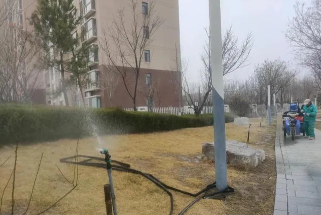 針對冬季土壤幹旱情況,早春澆灌返青水。利用水比熱大的特點,降低地溫,減小晝夜溫差,延緩植物發芽,避免晚霜或倒春寒危害。同時,隨著氣溫升高,根系開始萌動,適時澆水促進植物返青和萌芽生長。