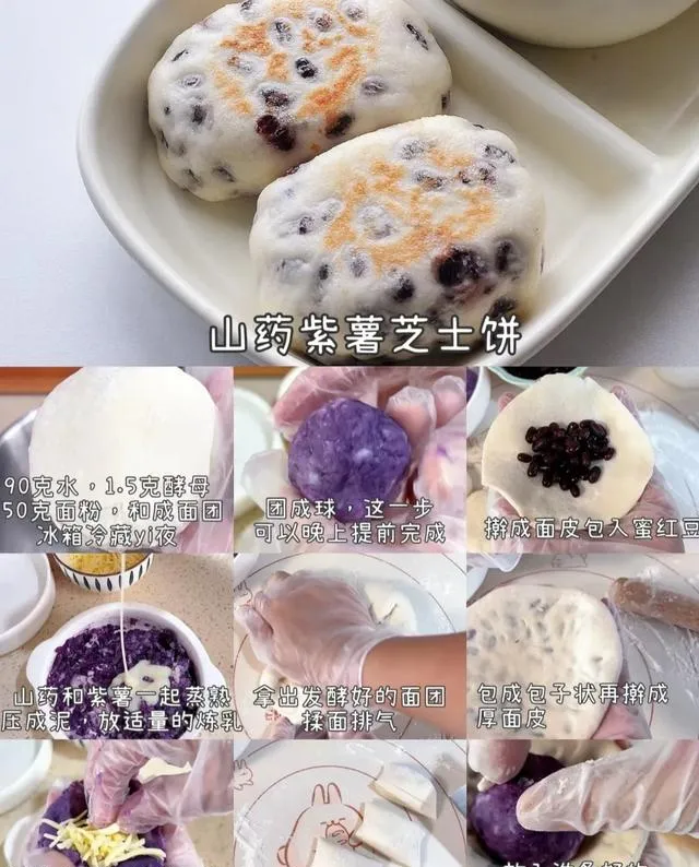 食材:面粉,芝士,山藥,紫薯