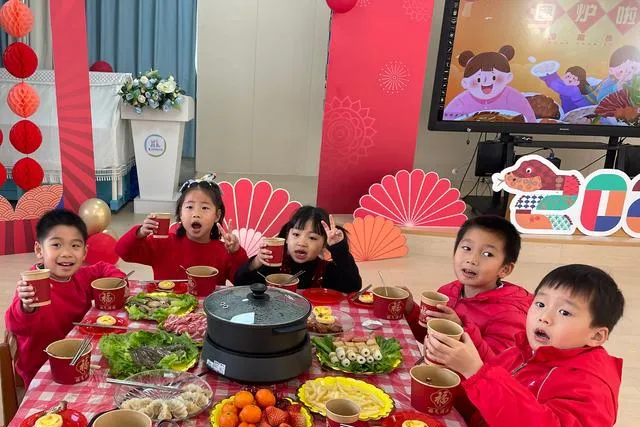 到了中午,當熱氣騰騰的爐子擺上桌,整個幼稚園瞬間充滿了歡聲笑語。孩子們歡呼雀躍地跑到辦公室,邀請園長媽媽一同加入圍爐。大家圍坐在一起,開心地挑選著自己愛吃的食物,你一言我一語,分享著勞動的成果,感受著圍爐帶來的溫暖與歡樂。喜慶、熱鬧的年味在空氣中彌漫開來,孩子們的臉上洋溢著幸福與自豪。