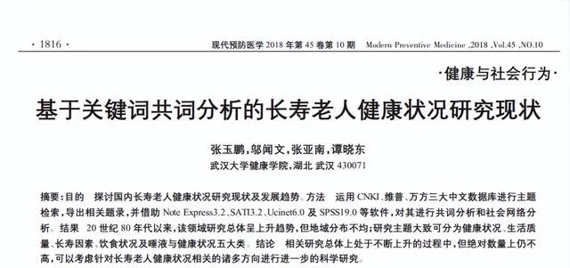 [1]張玉鵬.基於關鍵詞共詞分析的長壽老人健康狀況研究現狀, 現代預防醫學, 2018-05-25