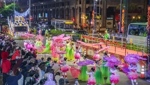 乙巳蛇年正月初三晚20時,澳門特區政府旅遊局主辦的「金鱗升輝歡樂春節 2025農歷新年花車匯演」盛大開幕,17部花車與來自海內外約1300名表演者一一亮相,既有來自汕頭頗具嶺南潮汕民風的英歌舞,也有遠道而來的西班牙風情歌舞,還有與澳門同為「東亞文化之都」的日本鎌倉市及南韓安城市的藝團登台,近2個小時的音樂歌舞武術雜技等多種形式的表演,為觀眾帶來全方位視聽享受,充分呈現了澳門中西合璧、相容並包的文化特色。