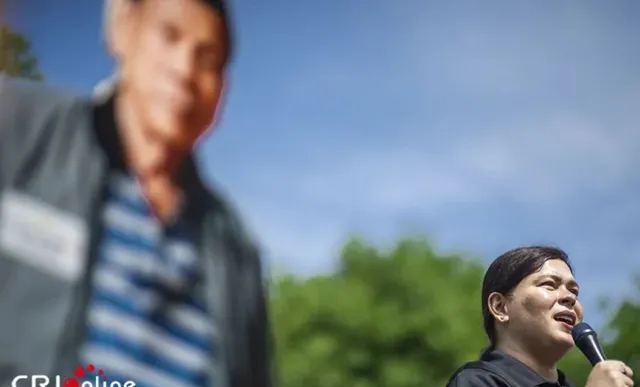 當地時間5月31日,菲律賓副總統莎拉·杜特爾特在海牙發表講話。